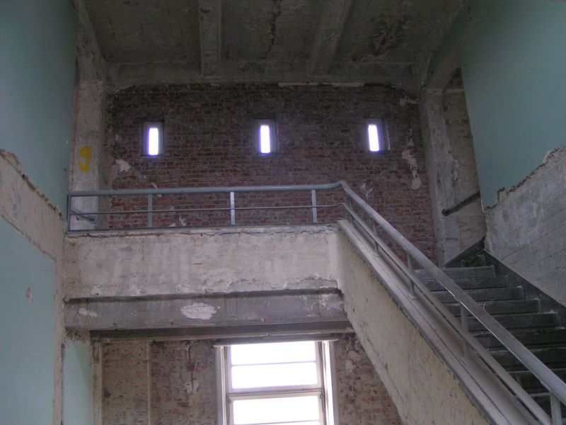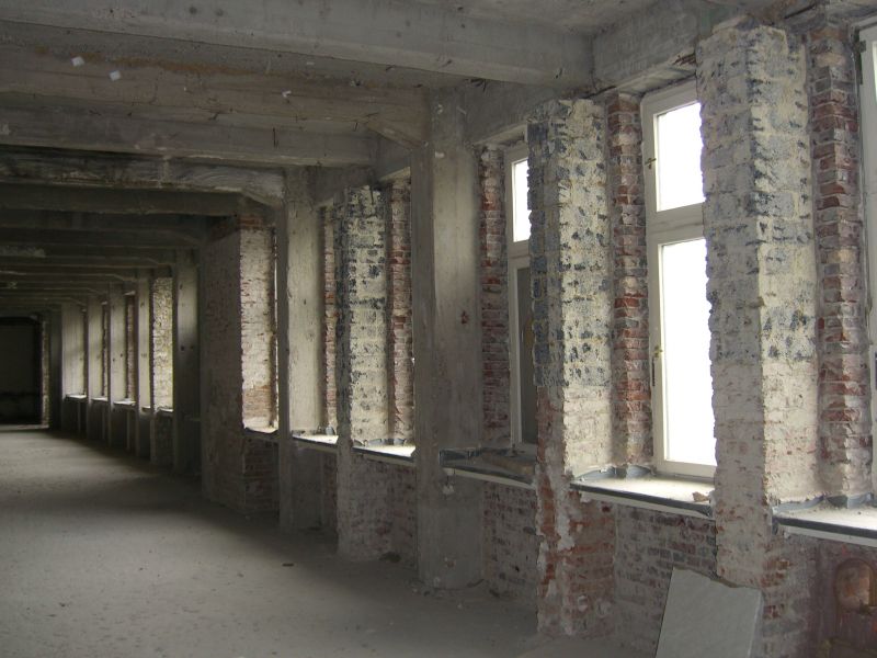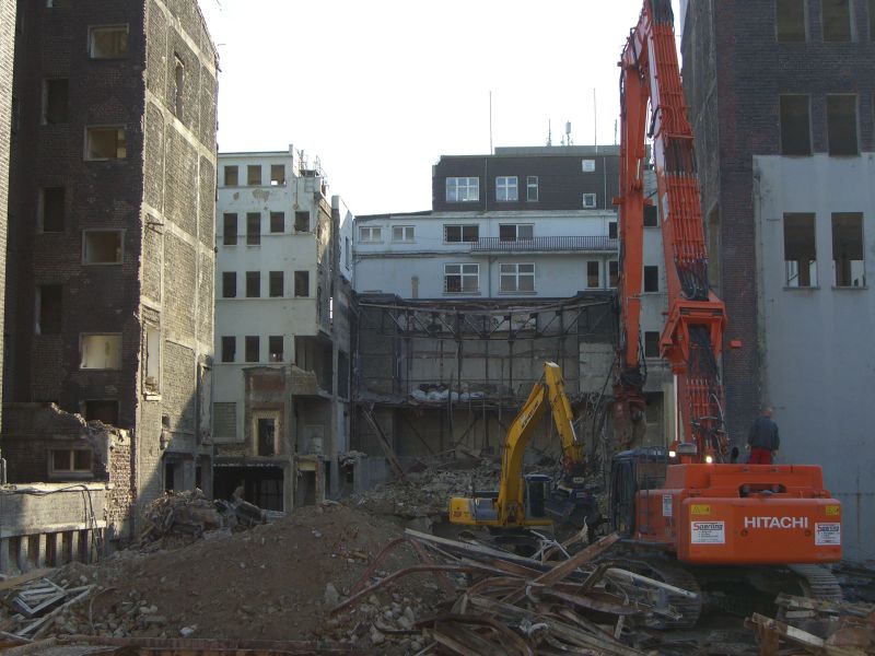Bei der Entkernung des Gebäudes wurde die denkmalgeschützte straßenseitige Ziegelfassade der Bauteile I, II, III und IV durch eine Stützkonstruktion aus Stahl gehalten. Die Bauteile VI (Musiksaal) und das 1959 errichtete Bauteil V wurden abgebrochen, der markante Hotelturm blieb erhalten.