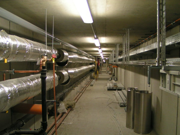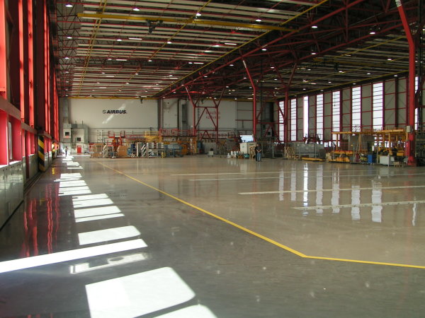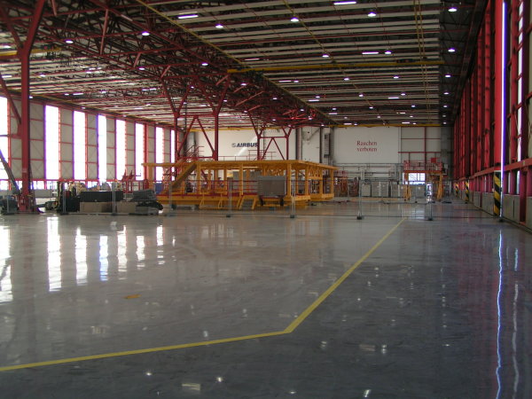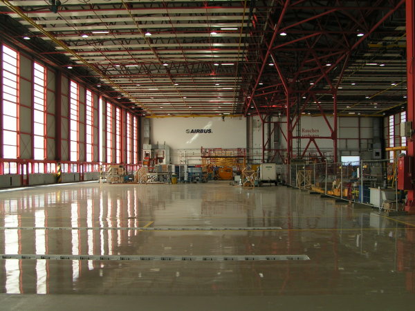 Unterhalb der Sohle wurde ein begehbarer Medienkanal mit einigen Technikräumen errichtet. Von diesem Kanal führen unterirdische Leitungen zu einer Vielzahl von sogenannten Floorpits (über 2.0 m tiefe, wasserdichte, mit befahrbaren Abdeckungen versehene Stahlbetonschächte). Die Floorpits, eine Rinne an der Hallenlängsseite, div. Einbauteile und andere kleine Stahlbetonschächte mußten in der neuen Sohlplatte integriert werden. Für die Wartung der Flugzeuge sollten später verfahrbare Stahlbühnen eingebaut werden. Für diese Bühnen wurden Schienen in der Sohlplatte integriert.