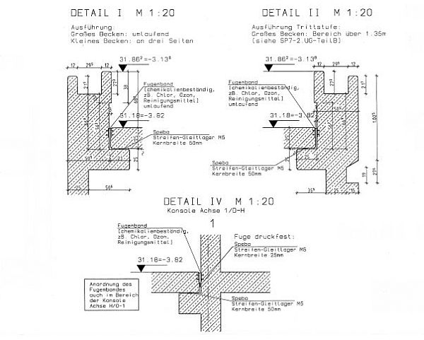 Das Gebäude ist ansonsten vorwiegend ein Stahlbetonbau, der insbesondere im Bereich der Therapiebecken eine sehr komplexe Schalungsgeometrie aufweist.